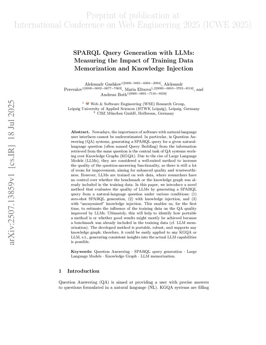 Nowadays, the importance of software with natural-language user interfaces cannot be underestimated. In particular, in Question Answering (QA) systems, generating a SPARQL query for a given natural-language question (often named Query Building) from the information retrieved from the same question is the central task of QA systems working over Knowledge Graphs (KGQA). Due to the rise of Large Language Models (LLMs), they are considered a well-suited method to increase the quality of the question-answering functionality, as there is still a lot of room for improvement, aiming for enhanced quality and trustworthiness. However, LLMs are trained on web data, where researchers have no control over whether the benchmark or the knowledge graph was already included in the training data. In this paper, we introduce a novel method that evaluates the quality of LLMs by generating a SPARQL query from a natural-language question under various conditions: (1) zero-shot SPARQL generation, (2) with knowledge injection, and (3) with "anonymized" knowledge injection. This enables us, for the first time, to estimate the influence of the training data on the QA quality improved by LLMs. Ultimately, this will help to identify how portable a method is or whether good results might mostly be achieved because a benchmark was already included in the training data (cf. LLM memorization). The developed method is portable, robust, and supports any knowledge graph; therefore, it could be easily applied to any KGQA or LLM, s.t., generating consistent insights into the actual LLM capabilities is possible.