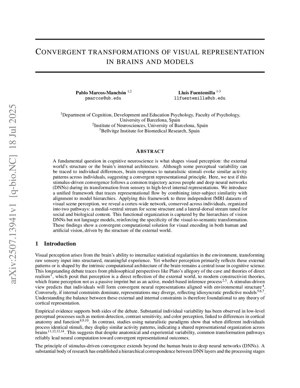 Shared representations in brains and models reveal a two-route cortical organization during scene perception