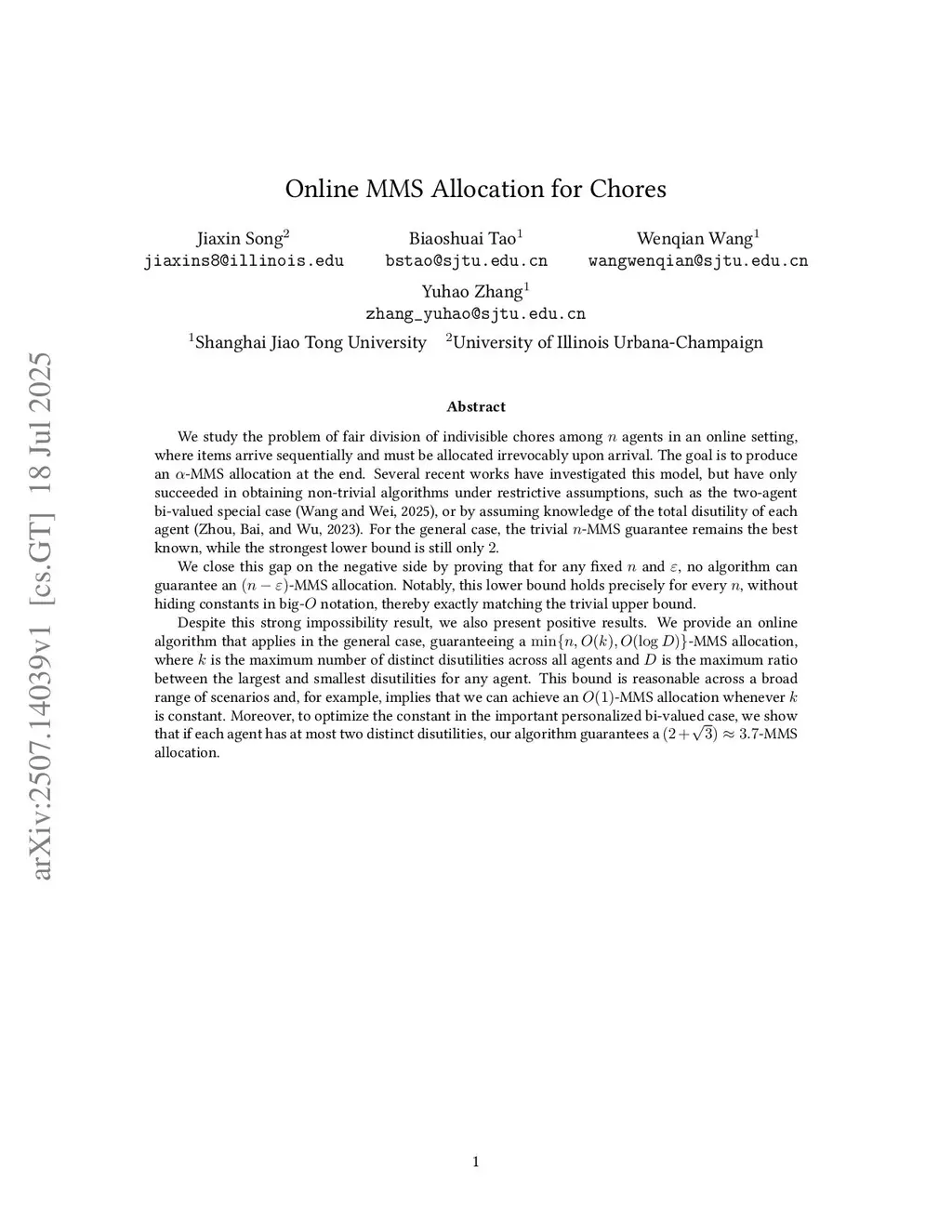 We study the problem of fair division of indivisible chores among agents in an online setting, where items arrive sequentially and must be allocated irrevocably upon arrival. The goal is to produce an -MMS allocation at the end. Several recent works have investigated this model, but have only succeeded in obtaining non-trivial algorithms under restrictive assumptions, such as the two-agent bi-valued special case (Wang and Wei, 2025), or by assuming knowledge of the total disutility of each agent (Zhou, Bai, and Wu, 2023). For the general case, the trivial -MMS guarantee remains the best known, while the strongest lower bound is still only .We close this gap on the negative side by proving that for any fixed and , no algorithm can guarantee an -MMS allocation. Notably, this lower bound holds precisely for every , without hiding constants in big- notation, thereby exactly matching the trivial upper bound.Despite this strong impossibility result, we also present positive results. We provide an online algorithm that applies in the general case, guaranteeing a -MMS allocation, where is the maximum number of distinct disutilities across all agents and is the maximum ratio between the largest and smallest disutilities for any agent. This bound is reasonable across a broad range of scenarios and, for example, implies that we can achieve an -MMS allocation whenever is constant. Moreover, to optimize the constant in the important personalized bi-valued case, we show that if each agent has at most two distinct disutilities, our algorithm guarantees a -MMS allocation.