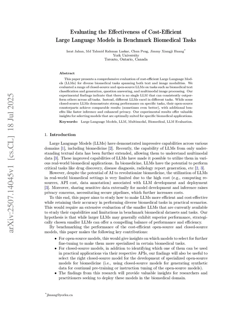 This paper presents a comprehensive evaluation of cost-efficient Large Language Models (LLMs) for diverse biomedical tasks spanning both text and image modalities. We evaluated a range of closed-source and open-source LLMs on tasks such as biomedical text classification and generation, question answering, and multimodal image processing. Our experimental findings indicate that there is no single LLM that can consistently outperform others across all tasks. Instead, different LLMs excel in different tasks. While some closed-source LLMs demonstrate strong performance on specific tasks, their open-source counterparts achieve comparable results (sometimes even better), with additional benefits like faster inference and enhanced privacy. Our experimental results offer valuable insights for selecting models that are optimally suited for specific biomedical applications.