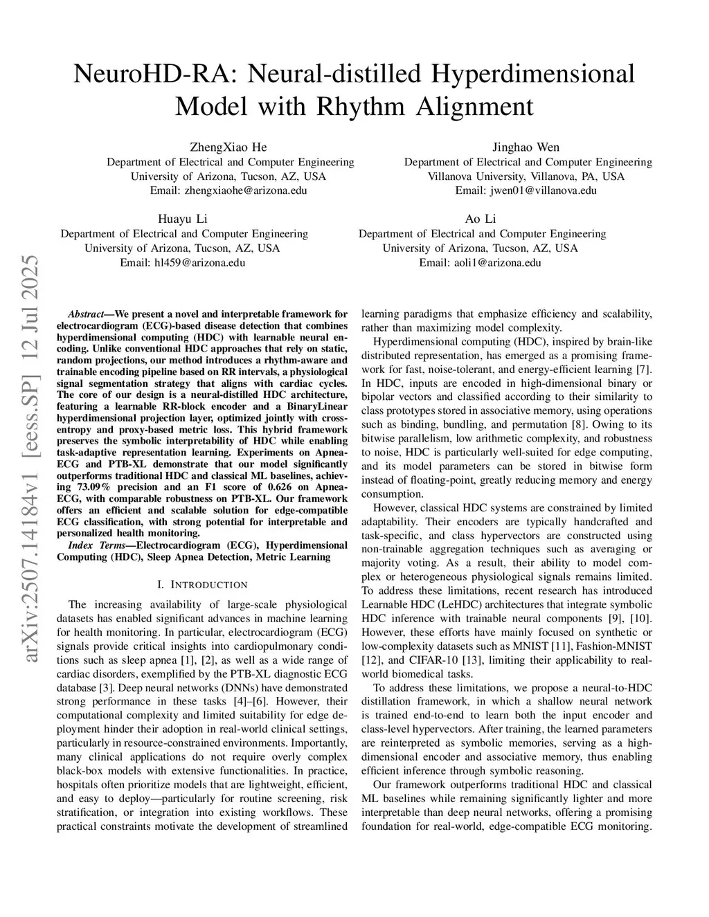 NeuroHD-RA: Neural-distilled Hyperdimensional Model with Rhythm Alignment