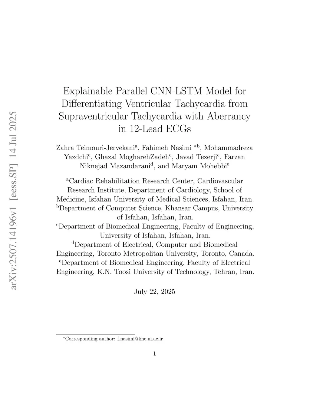 Explainable Parallel CNN-LSTM Model for Differentiating Ventricular Tachycardia from Supraventricular Tachycardia with Aberrancy in 12-Lead ECGs