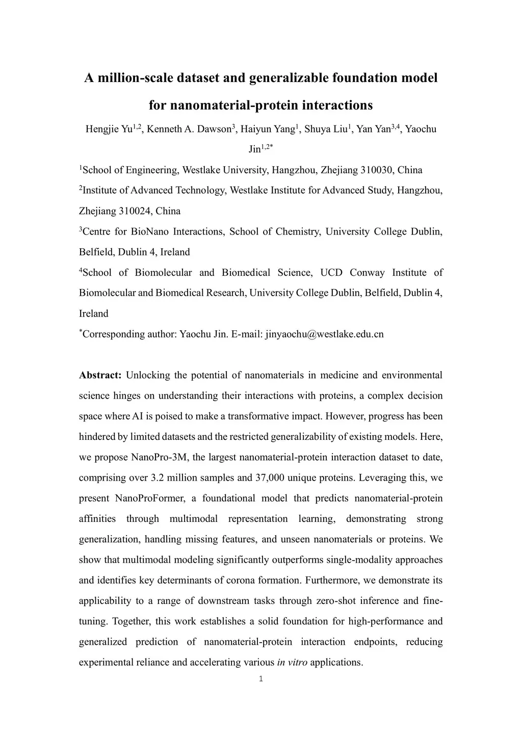 A million-scale dataset and generalizable foundation model for nanomaterial-protein interactions
