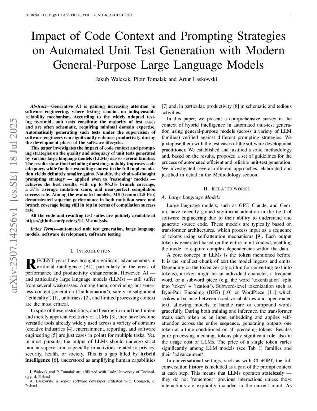 Generative AI is gaining increasing attention in software engineering, where testing remains an indispensable reliability mechanism. According to the widely adopted testing pyramid, unit tests constitute the majority of test cases and are often schematic, requiring minimal domain expertise. Automatically generating such tests under the supervision of software engineers can significantly enhance productivity during the development phase of the software lifecycle.This paper investigates the impact of code context and prompting strategies on the quality and adequacy of unit tests generated by various large language models (LLMs) across several families. The results show that including docstrings notably improves code adequacy, while further extending context to the full implementation yields definitely smaller gains. Notably, the chain-of-thought prompting strategy -- applied even to 'reasoning' models -- achieves the best results, with up to 96.3\% branch coverage, a 57\% average mutation score, and near-perfect compilation success rate. Among the evaluated models, M5 (Gemini 2.5 Pro) demonstrated superior performance in both mutation score and branch coverage being still in top in terms of compilation success rate.All the code and resulting test suites are publicly available atthis https URL.