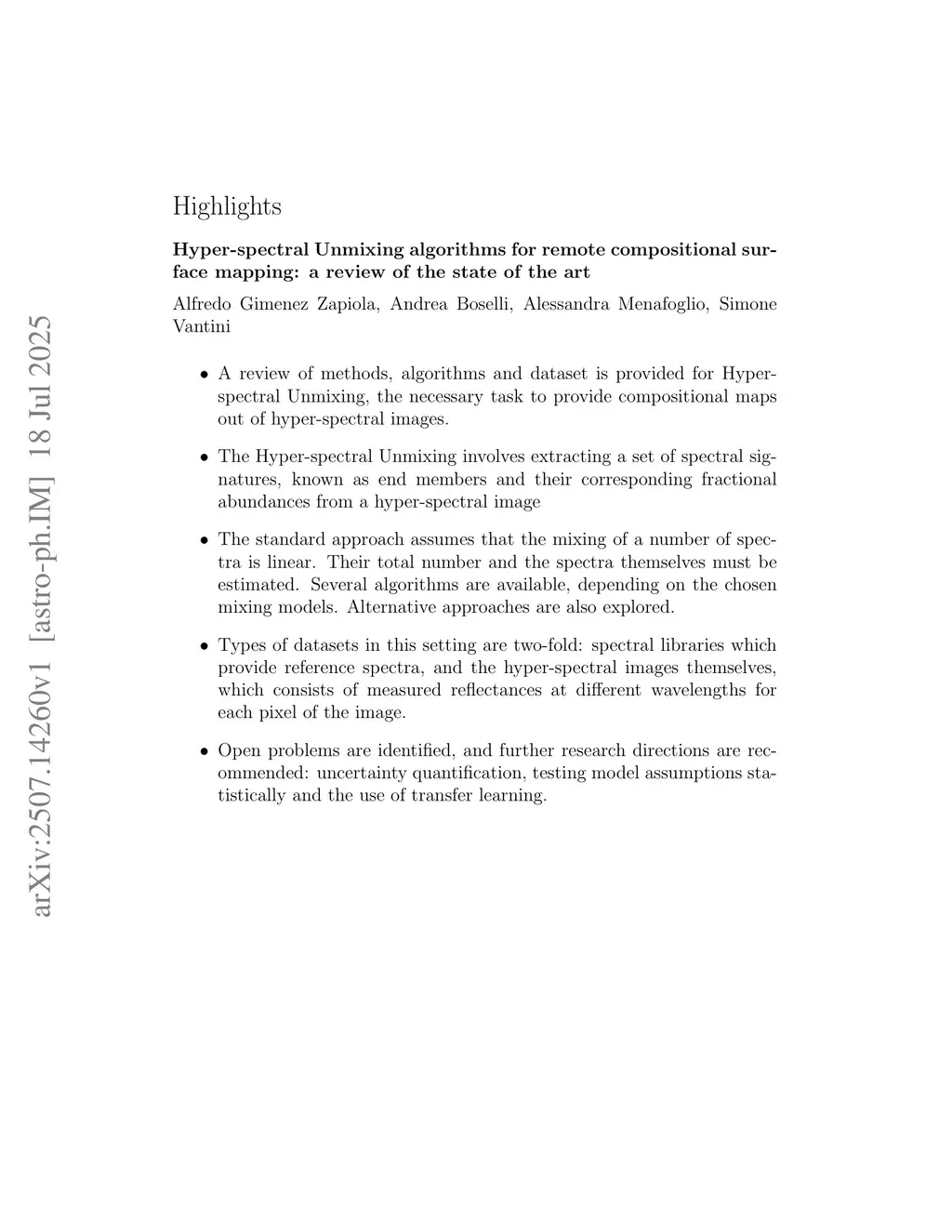 This work concerns a detailed review of data analysis methods used for remotely sensed images of large areas of the Earth and of other solid astronomical objects. In detail, it focuses on the problem of inferring the materials that cover the surfaces captured by hyper-spectral images and estimating their abundances and spatial distributions within the region. The most successful and relevant hyper-spectral unmixing methods are reported as well as compared, as an addition to analysing the most recent methodologies. The most important public data-sets in this setting, which are vastly used in the testing and validation of the former, are also systematically explored. Finally, open problems are spotlighted and concrete recommendations for future research are provided.