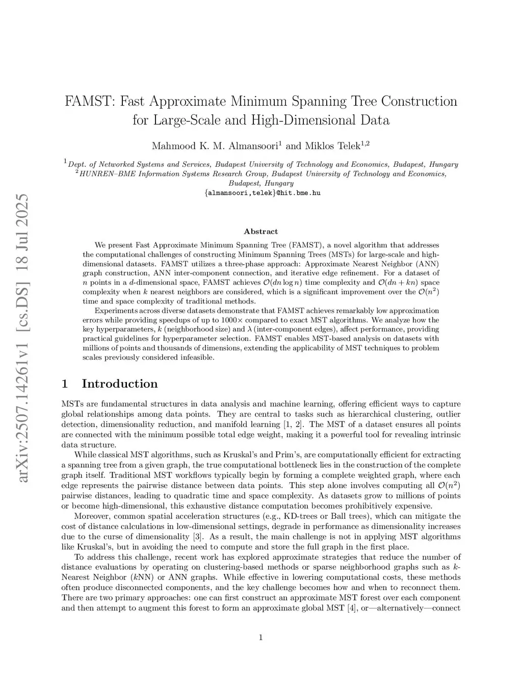 FAMST: Fast Approximate Minimum Spanning Tree Construction for Large-Scale and High-Dimensional Data