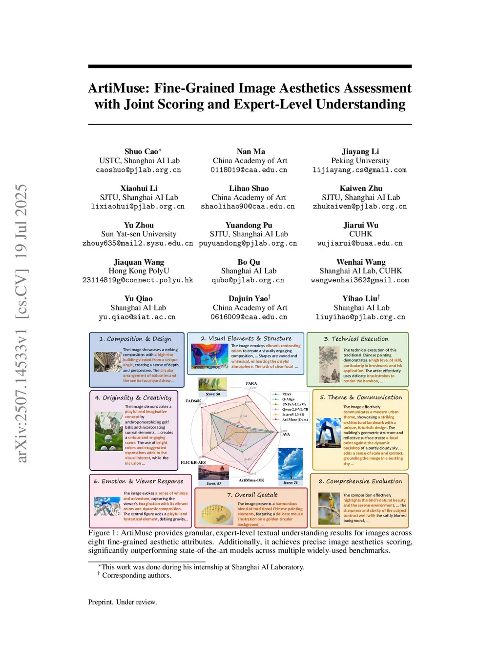 The rapid advancement of educational applications, artistic creation, and AI-generated content (AIGC) technologies has substantially increased practical requirements for comprehensive Image Aesthetics Assessment (IAA), particularly demanding methods capable of delivering both quantitative scoring and professional understanding. Multimodal Large Language Model (MLLM)-based IAA methods demonstrate stronger perceptual and generalization capabilities compared to traditional approaches, yet they suffer from modality bias (score-only or text-only) and lack fine-grained attribute decomposition, thereby failing to support further aesthetic assessment. In this paper, we present:(1) ArtiMuse, an innovative MLLM-based IAA model with Joint Scoring and Expert-Level Understanding capabilities; (2) ArtiMuse-10K, the first expert-curated image aesthetic dataset comprising 10,000 images spanning 5 main categories and 15 subcategories, each annotated by professional experts with 8-dimensional attributes analysis and a holistic score. Both the model and dataset will be made public to advance the field.