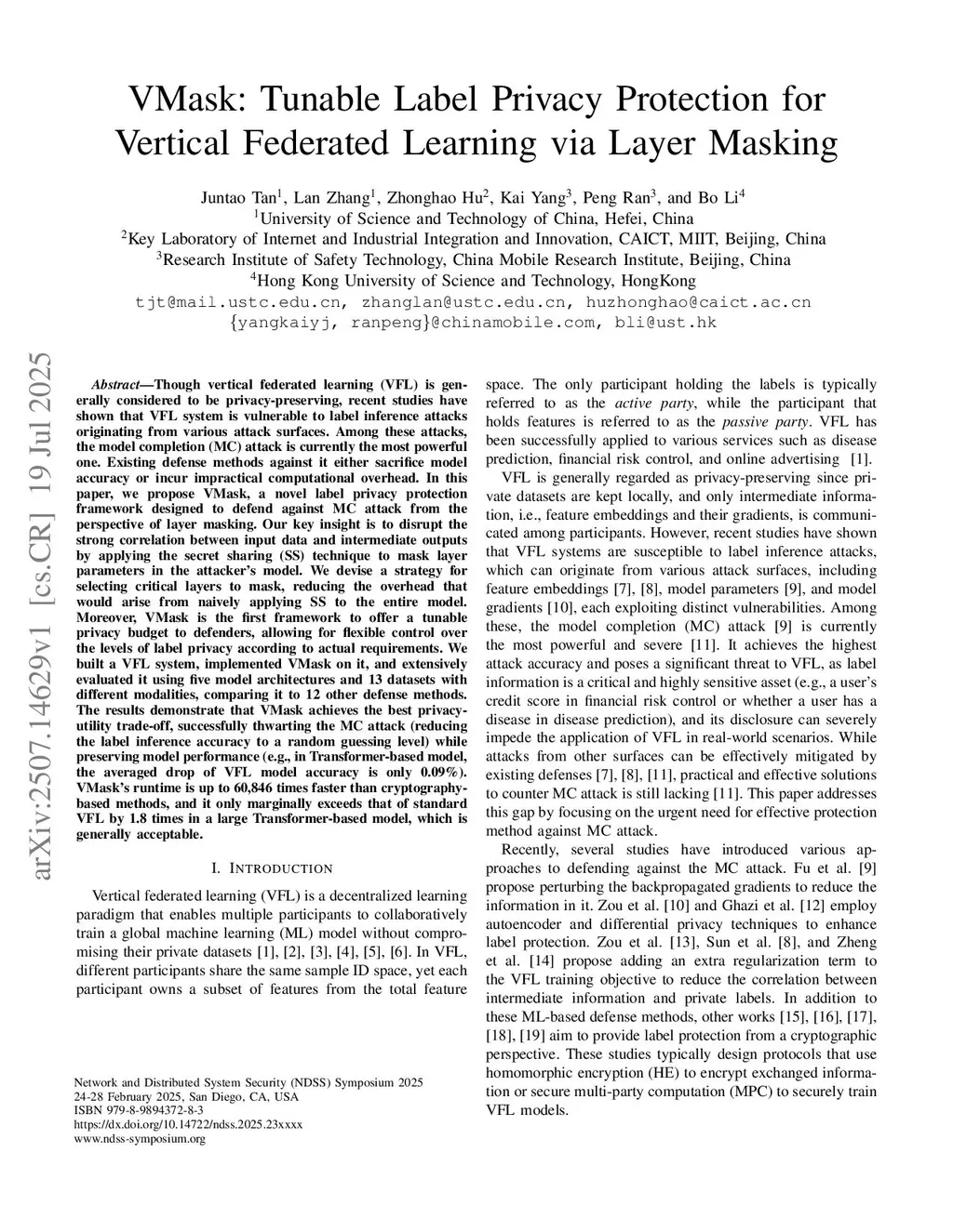 VMask: Tunable Label Privacy Protection for Vertical Federated Learning via Layer Masking