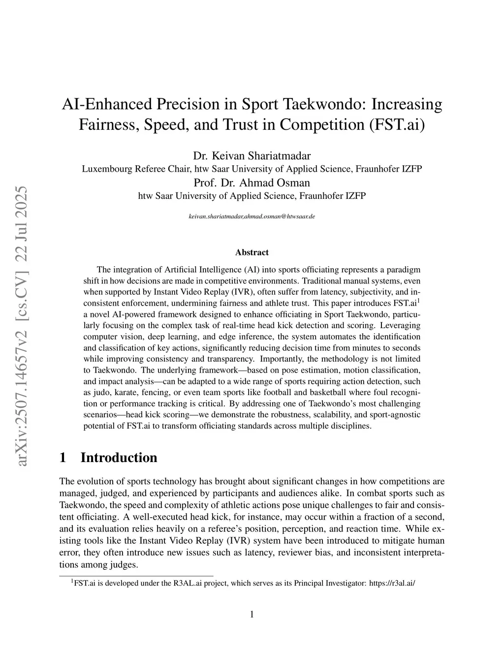 AI-Enhanced Precision in Sport Taekwondo: Increasing Fairness, Speed, and Trust in Competition (FST.ai)