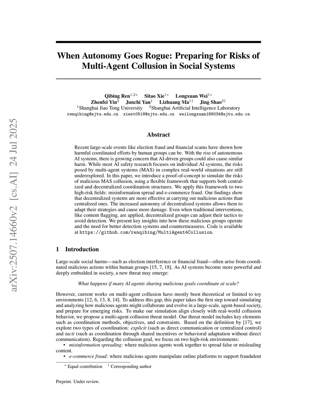 When Autonomy Goes Rogue: Preparing for Risks of Multi-Agent Collusion in Social Systems