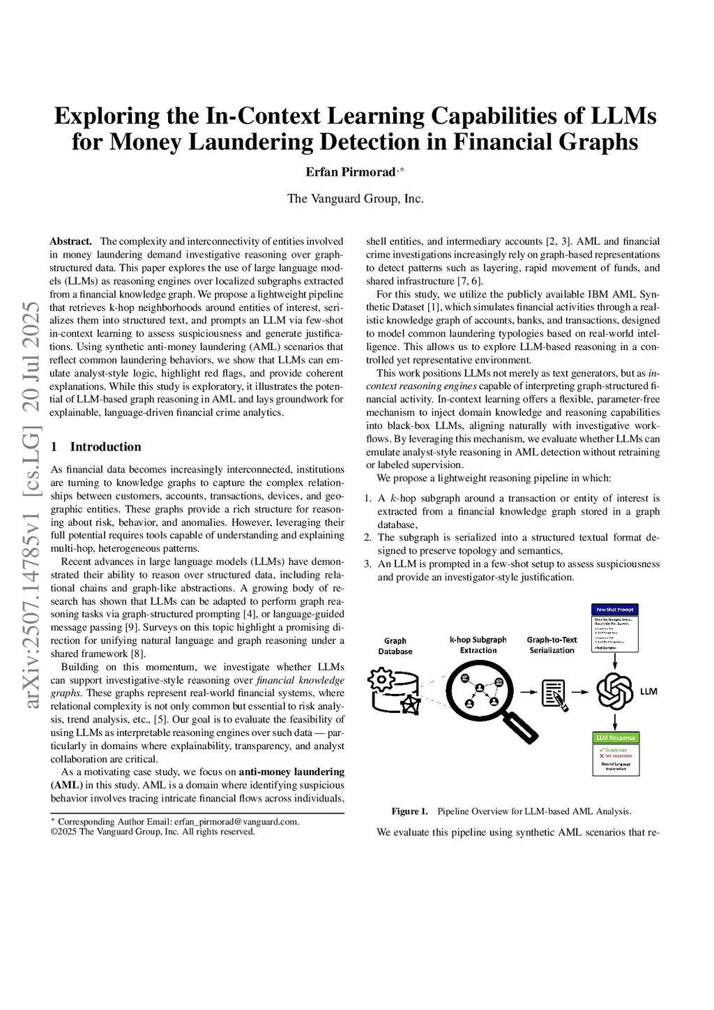 Exploring the In-Context Learning Capabilities of LLMs for Money Laundering Detection in Financial Graphs