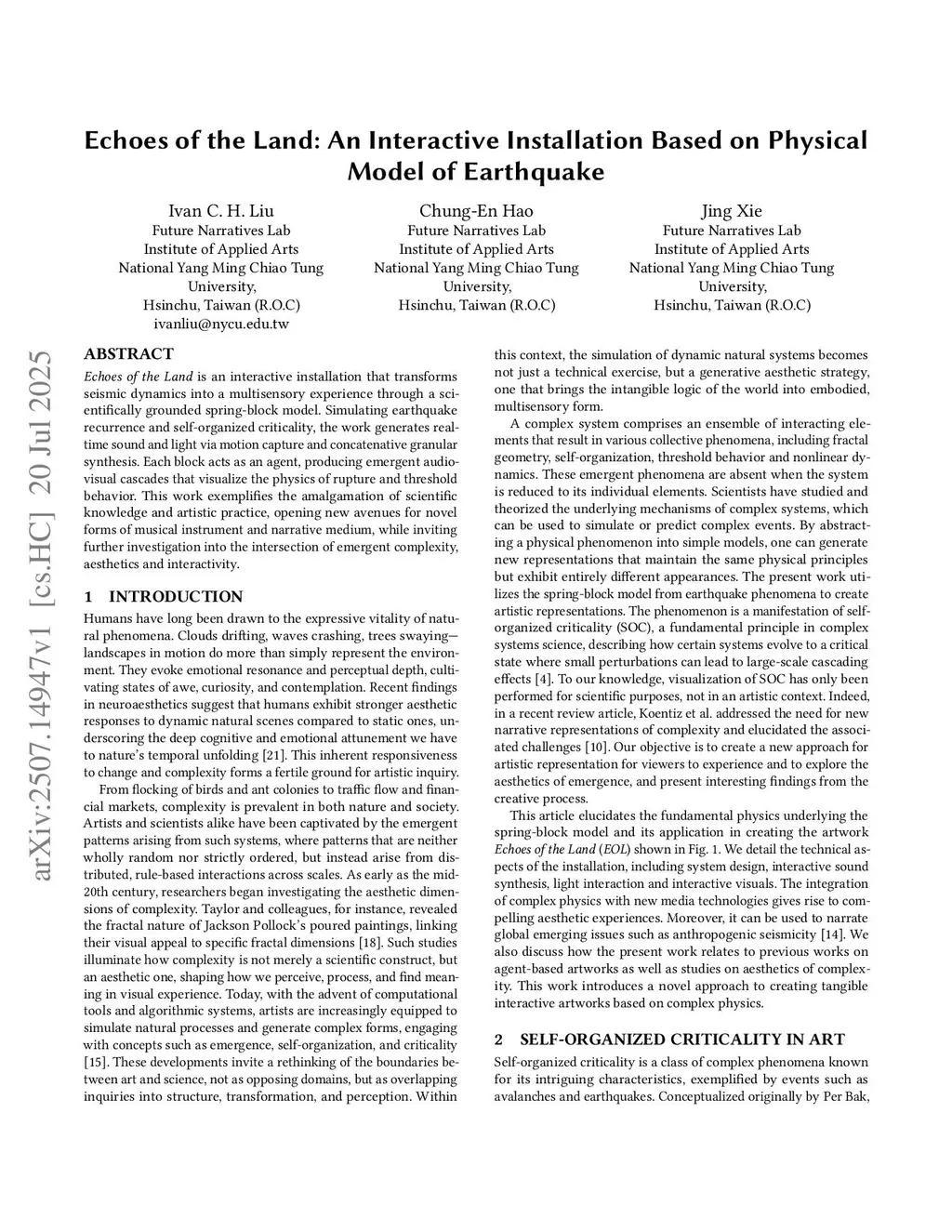 Echoes of the Land: An Interactive Installation Based on Physical Model of Earthquake