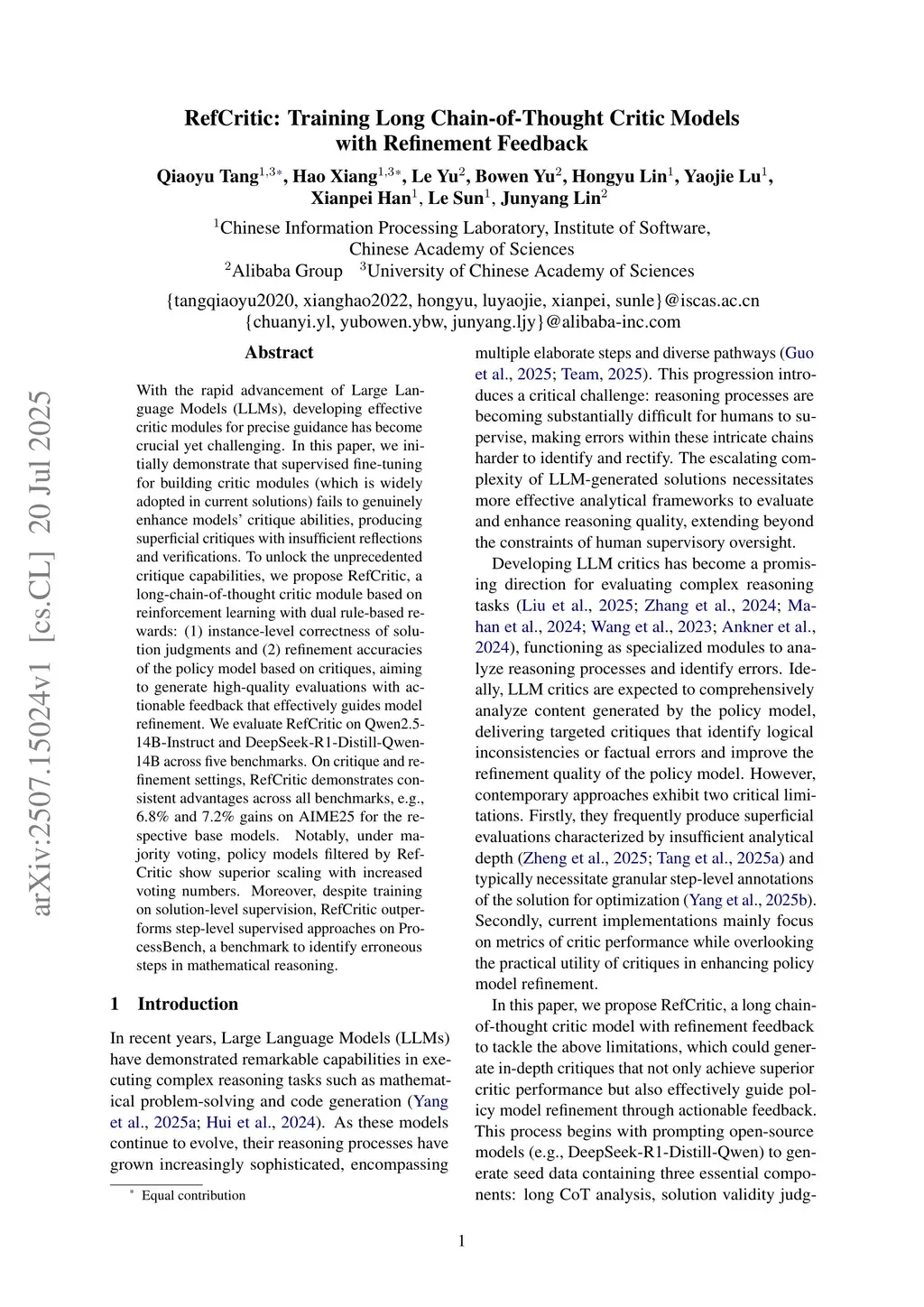 With the rapid advancement of Large Language Models (LLMs), developing effective critic modules for precise guidance has become crucial yet challenging. In this paper, we initially demonstrate that supervised fine-tuning for building critic modules (which is widely adopted in current solutions) fails to genuinely enhance models' critique abilities, producing superficial critiques with insufficient reflections and verifications. To unlock the unprecedented critique capabilities, we propose RefCritic, a long-chain-of-thought critic module based on reinforcement learning with dual rule-based rewards: (1) instance-level correctness of solution judgments and (2) refinement accuracies of the policy model based on critiques, aiming to generate high-quality evaluations with actionable feedback that effectively guides model refinement. We evaluate RefCritic on Qwen2.5-14B-Instruct and DeepSeek-R1-Distill-Qwen-14B across five benchmarks. On critique and refinement settings, RefCritic demonstrates consistent advantages across all benchmarks, e.g., 6.8\% and 7.2\% gains on AIME25 for the respective base models. Notably, under majority voting, policy models filtered by RefCritic show superior scaling with increased voting numbers. Moreover, despite training on solution-level supervision, RefCritic outperforms step-level supervised approaches on ProcessBench, a benchmark to identify erroneous steps in mathematical reasoning.