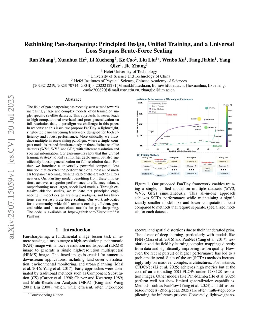 The field of pan-sharpening has recently seen a trend towards increasingly large and complex models, often trained on single, specific satellite datasets. This one-dataset, one-model approach leads to high computational overhead and impractical deployment. More critically, it overlooks a core challenge: poor generalization from reduced-resolution (RR) training to real-world full-resolution (FR) data. In response to this issue, we challenge this paradigm. We introduce a multiple-in-one training strategy, where a single, compact model is trained simultaneously on three distinct satellite datasets (WV2, WV3, and GF2). Our experiments show the primary benefit of this unified strategy is a significant and universal boost in FR generalization (QNR) across all tested models, directly addressing this overlooked problem. This paradigm also inherently solves the one-model-per-dataset challenge, and we support it with a highly reproducible, dependency-free codebase for true usability. Finally, we propose PanTiny, a lightweight framework designed specifically for this new, robust paradigm. We demonstrate it achieves a superior performance-to-efficiency balance, proving that principled, simple and robust design is more effective than brute-force scaling in this practical setting. Our work advocates for a community-wide shift towards creating efficient, deployable, and truly generalizable models for pan-sharpening. The code is open-sourced atthis https URL.