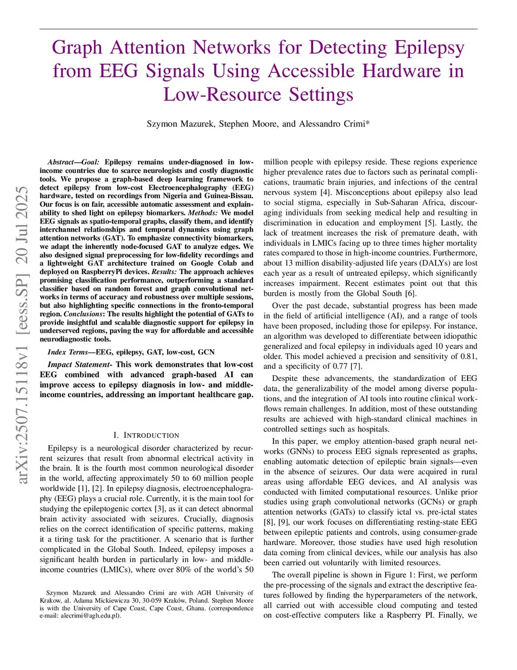 Graph Attention Networks for Detecting Epilepsy from EEG Signals Using Accessible Hardware in Low-Resource Settings