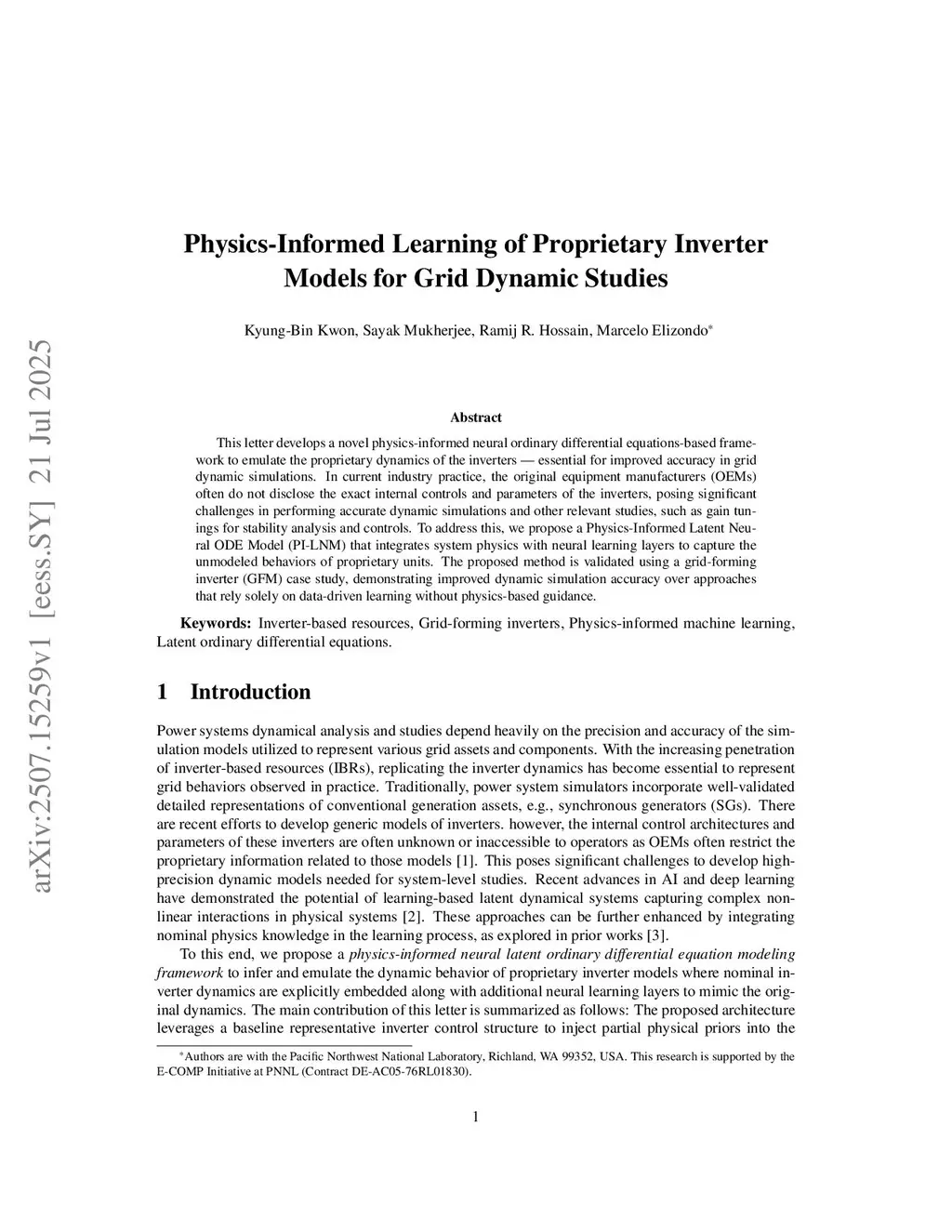This letter develops a novel physics-informed neural ordinary differential equations-based framework to emulate the proprietary dynamics of the inverters -- essential for improved accuracy in grid dynamic simulations. In current industry practice, the original equipment manufacturers (OEMs) often do not disclose the exact internal controls and parameters of the inverters, posing significant challenges in performing accurate dynamic simulations and other relevant studies, such as gain tunings for stability analysis and controls. To address this, we propose a Physics-Informed Latent Neural ODE Model (PI-LNM) that integrates system physics with neural learning layers to capture the unmodeled behaviors of proprietary units. The proposed method is validated using a grid-forming inverter (GFM) case study, demonstrating improved dynamic simulation accuracy over approaches that rely solely on data-driven learning without physics-based guidance.