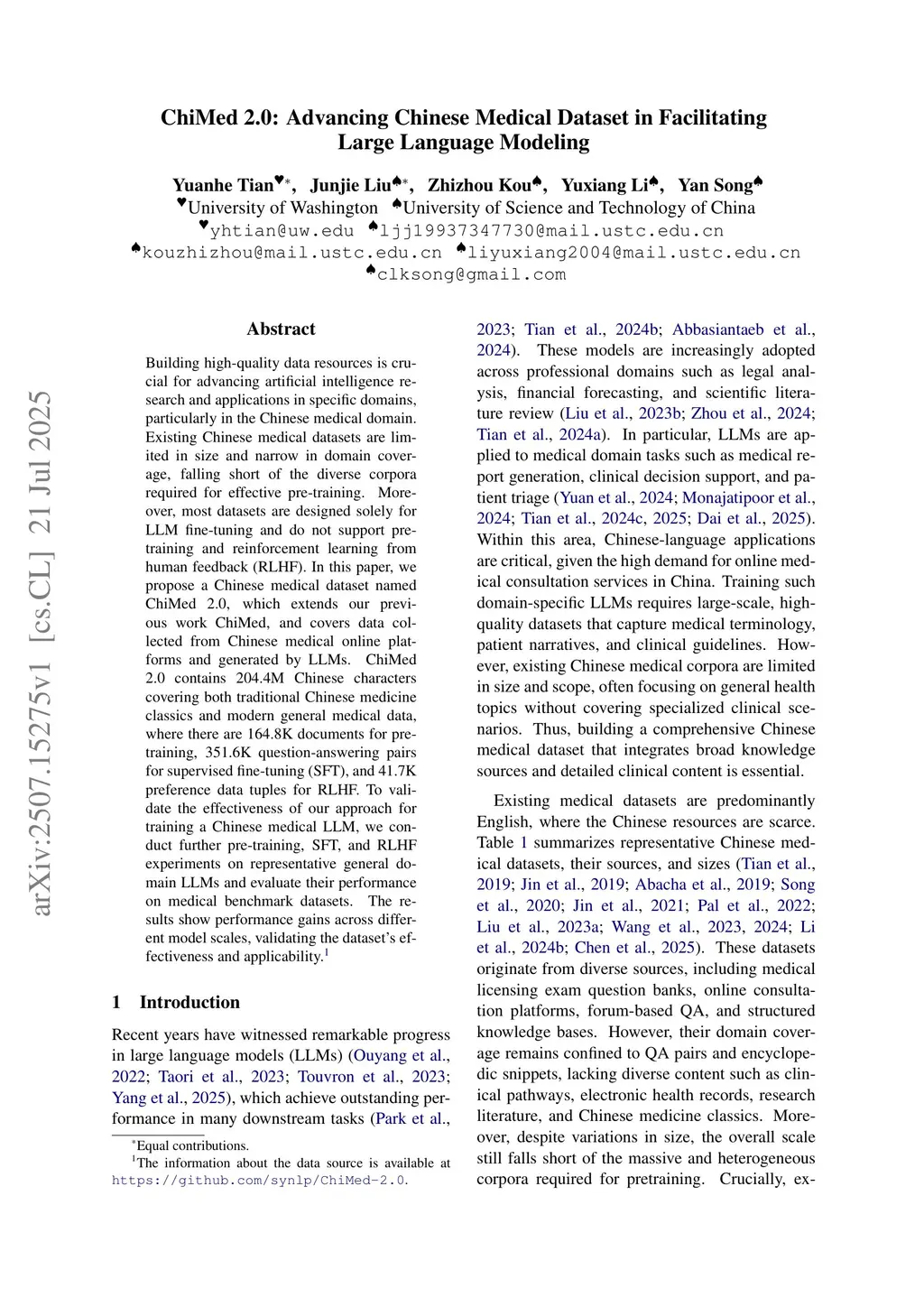 ChiMed 2.0: Advancing Chinese Medical Dataset in Facilitating Large Language Modeling