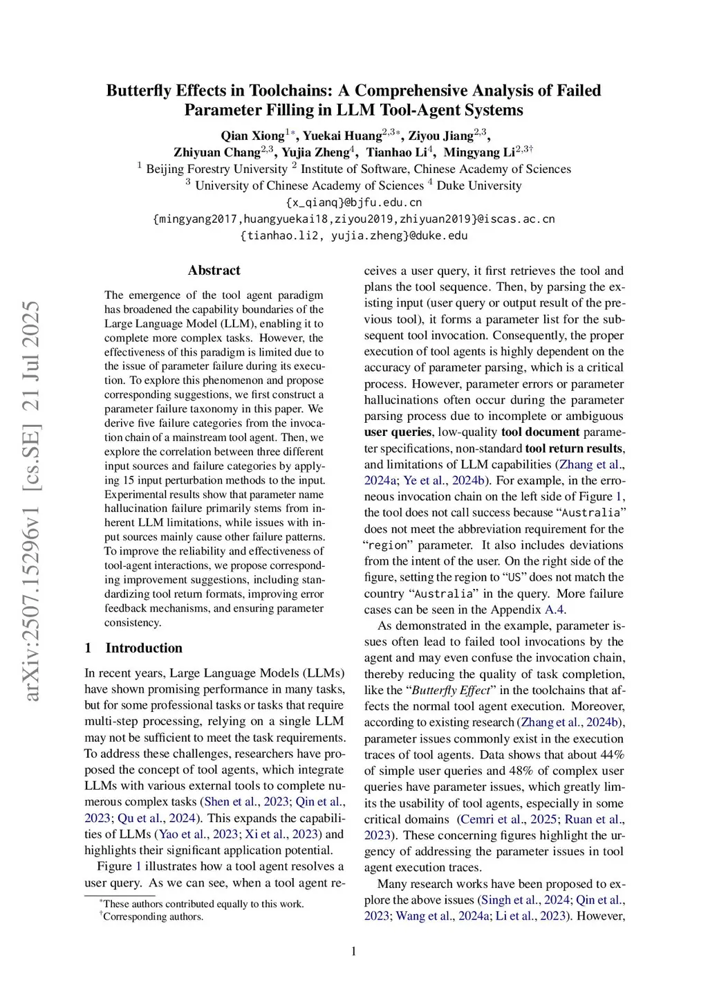 Butterfly Effects in Toolchains: A Comprehensive Analysis of Failed Parameter Filling in LLM Tool-Agent Systems
