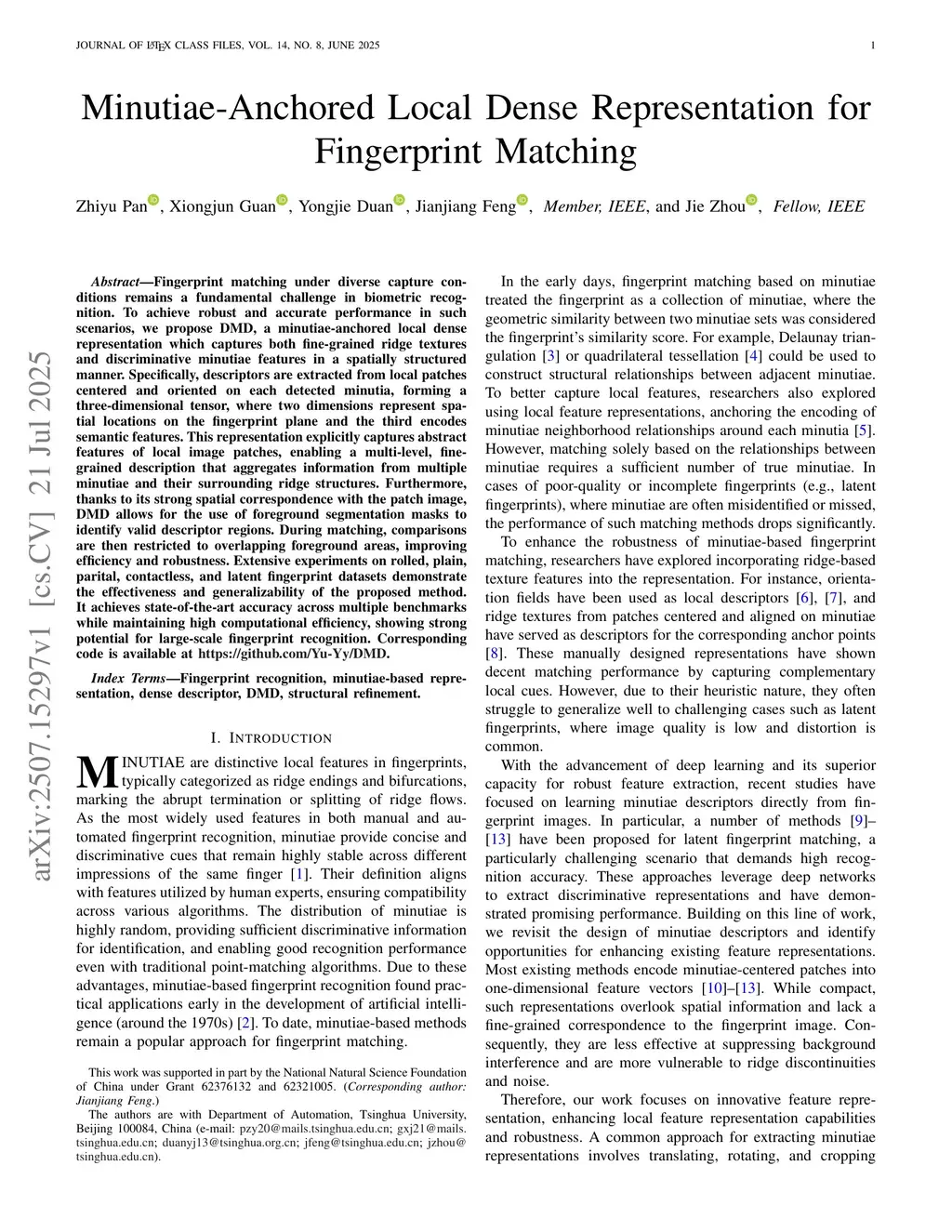Fingerprint matching under diverse capture conditions remains a fundamental challenge in biometric recognition. To achieve robust and accurate performance in such scenarios, we propose DMD, a minutiae-anchored local dense representation which captures both fine-grained ridge textures and discriminative minutiae features in a spatially structured manner. Specifically, descriptors are extracted from local patches centered and oriented on each detected minutia, forming a three-dimensional tensor, where two dimensions represent spatial locations on the fingerprint plane and the third encodes semantic features. This representation explicitly captures abstract features of local image patches, enabling a multi-level, fine-grained description that aggregates information from multiple minutiae and their surrounding ridge structures. Furthermore, thanks to its strong spatial correspondence with the patch image, DMD allows for the use of foreground segmentation masks to identify valid descriptor regions. During matching, comparisons are then restricted to overlapping foreground areas, improving efficiency and robustness. Extensive experiments on rolled, plain, parital, contactless, and latent fingerprint datasets demonstrate the effectiveness and generalizability of the proposed method. It achieves state-of-the-art accuracy across multiple benchmarks while maintaining high computational efficiency, showing strong potential for large-scale fingerprint recognition. Corresponding code is available atthis https URL.