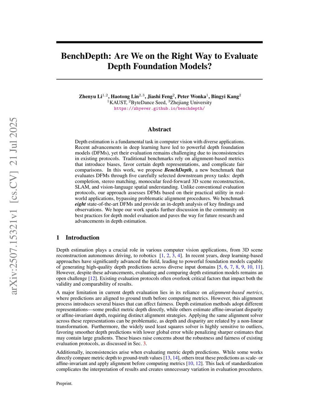 Depth estimation is a fundamental task in computer vision with diverse applications. Recent advancements in deep learning have led to powerful depth foundation models (DFMs), yet their evaluation remains challenging due to inconsistencies in existing protocols. Traditional benchmarks rely on alignment-based metrics that introduce biases, favor certain depth representations, and complicate fair comparisons. In this work, we propose BenchDepth, a new benchmark that evaluates DFMs through five carefully selected downstream proxy tasks: depth completion, stereo matching, monocular feed-forward 3D scene reconstruction, SLAM, and vision-language spatial understanding. Unlike conventional evaluation protocols, our approach assesses DFMs based on their practical utility in real-world applications, bypassing problematic alignment procedures. We benchmark eight state-of-the-art DFMs and provide an in-depth analysis of key findings and observations. We hope our work sparks further discussion in the community on best practices for depth model evaluation and paves the way for future research and advancements in depth estimation.