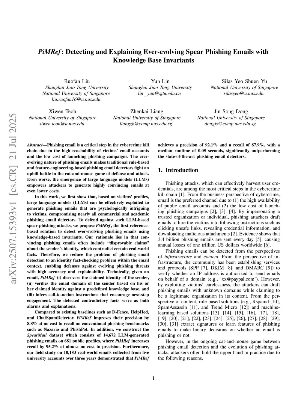 PiMRef: Detecting and Explaining Ever-evolving Spear Phishing Emails with Knowledge Base Invariants