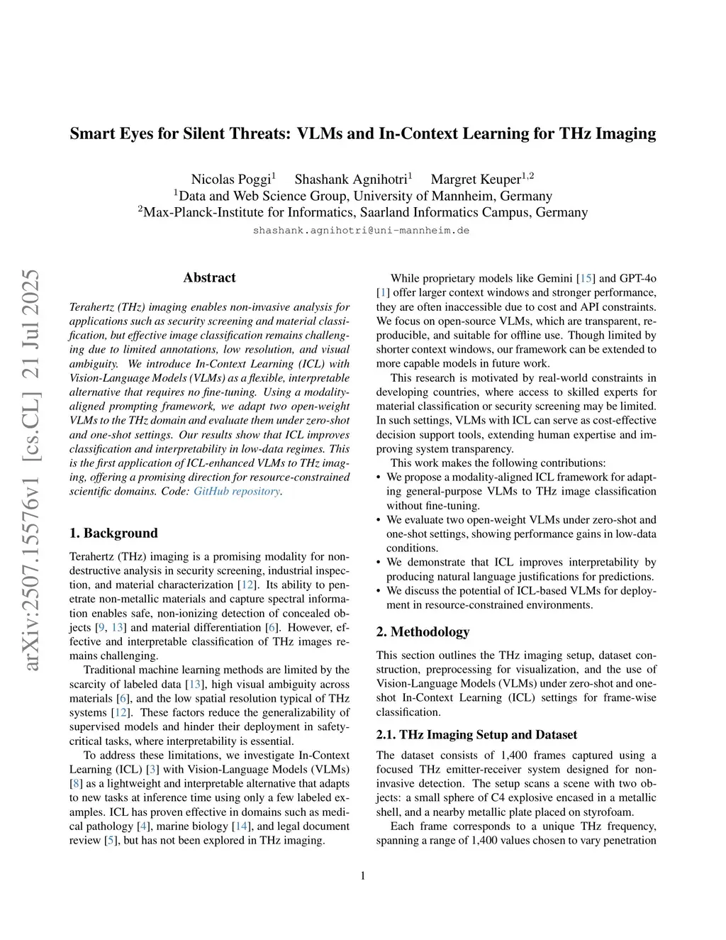 Smart Eyes for Silent Threats: VLMs and In-Context Learning for THz Imaging