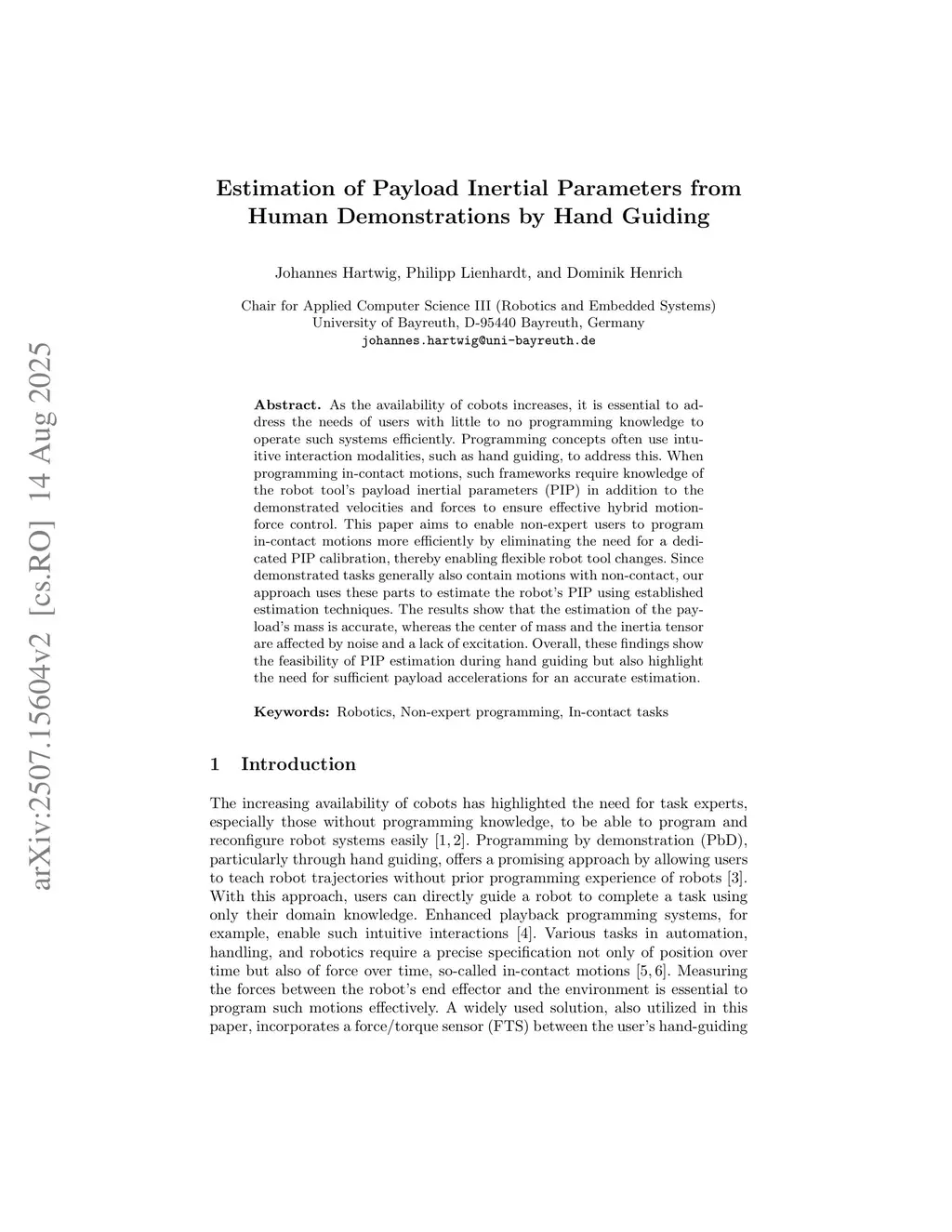 Estimation of Payload Inertial Parameters from Human Demonstrations by Hand Guiding