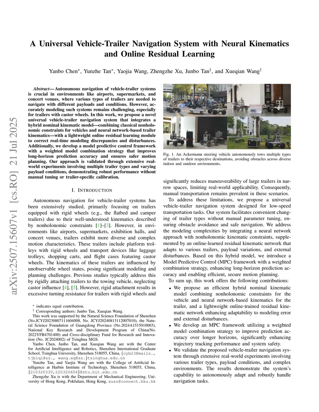 A Universal Vehicle-Trailer Navigation System with Neural Kinematics and Online Residual Learning