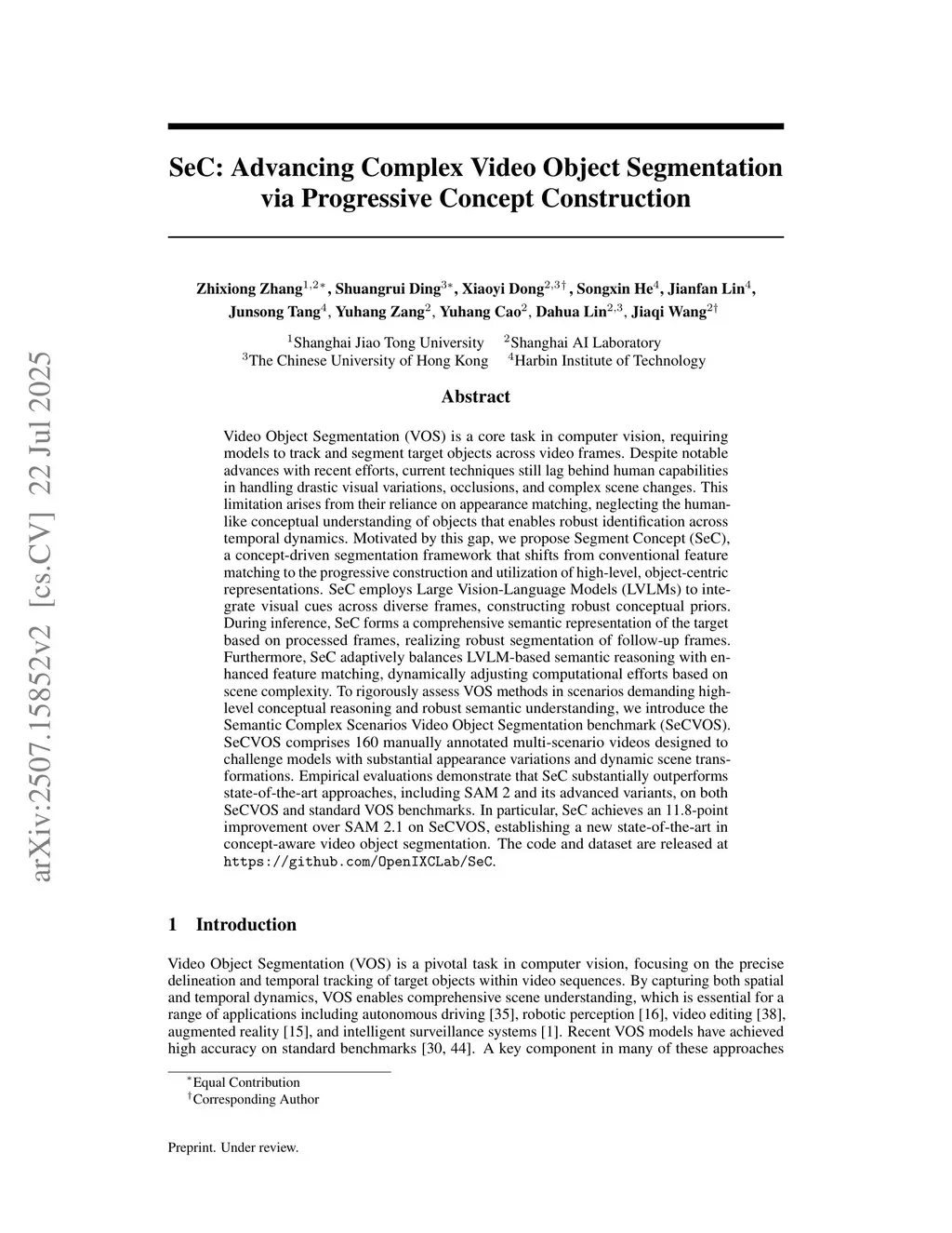 SeC: Advancing Complex Video Object Segmentation via Progressive Concept Construction