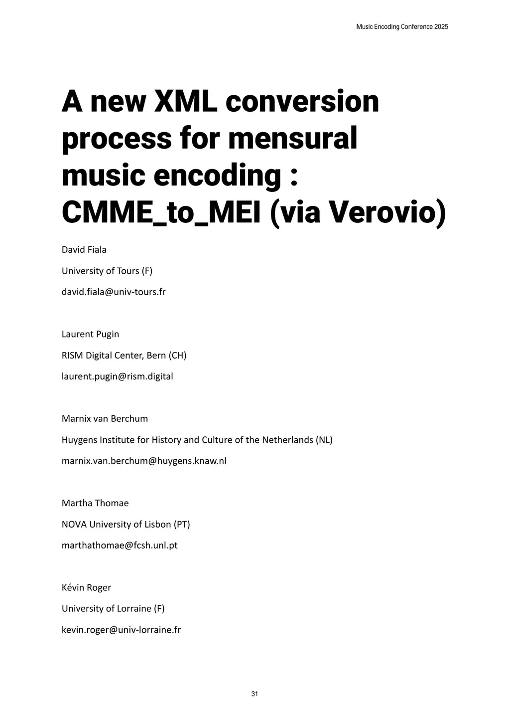 A new XML conversion process for mensural music encoding : CMME\_to\_MEI (via Verovio)