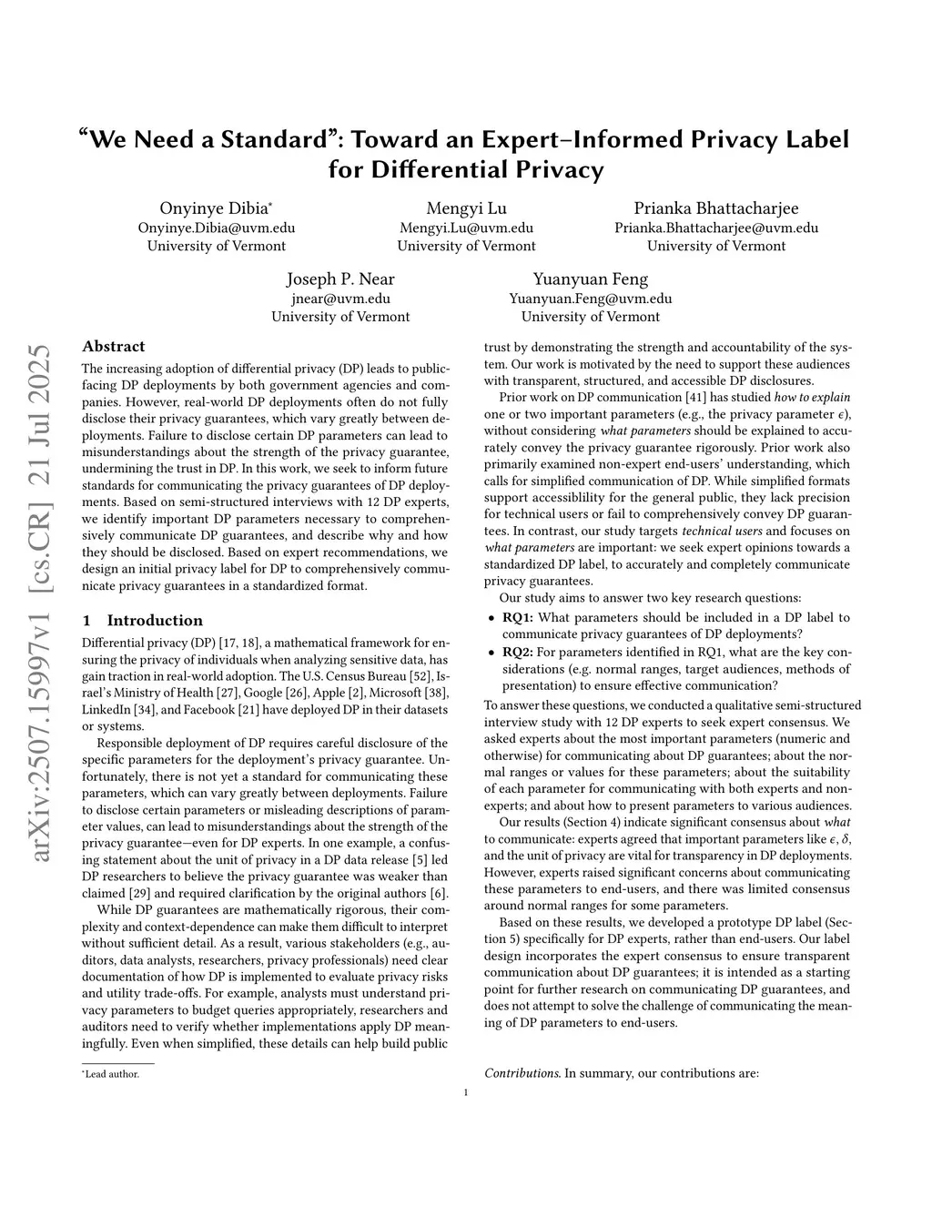 "We Need a Standard": Toward an Expert-Informed Privacy Label for Differential Privacy