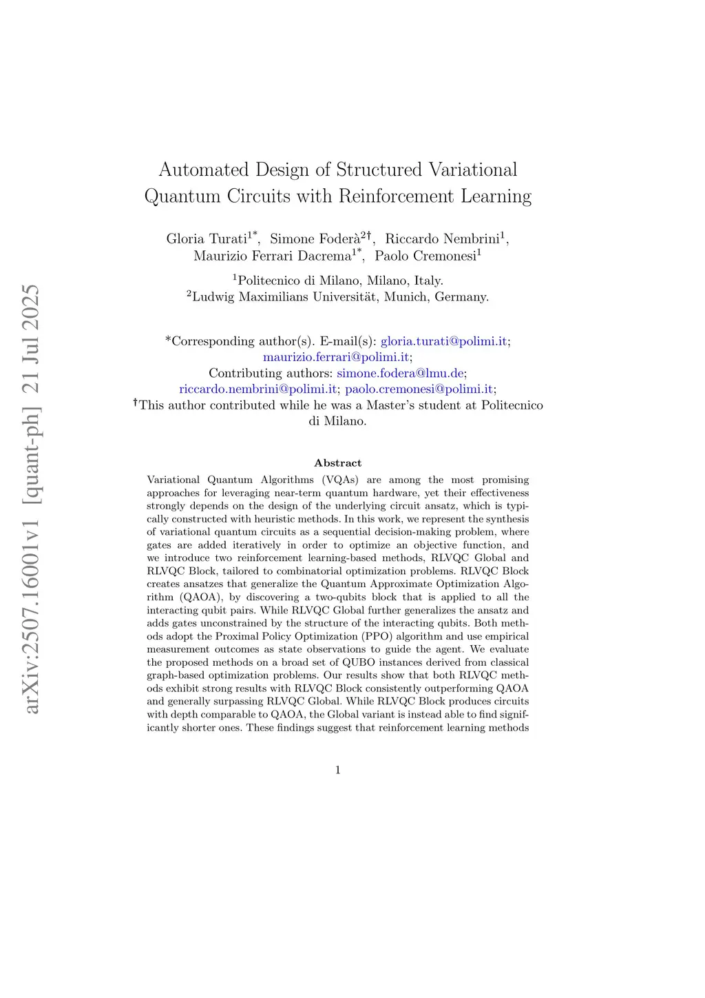 As quantum computing continues to gain attention, there is growing interest in how classical machine learning can assist quantum workflows in practice. Automated circuit design, sometimes referred to as Quantum Architecture Search (QAS), is a natural application but relies on the ability to model the quantum system to support learning as the number of qubits grows. This challenge is central to QAS, and much of the current literature that proposes new ways to model the ansatz focuses on small systems, often around ten qubits. In this work, we propose a complementary approach that separates a small-scale structure discovery phase, where a reusable modular circuit block is learned on small instances where classical learning is feasible, from a deployment phase, where the blocks are used to create the ansatz required for larger problems. To this end, we introduce Reinforcement Learning for Variational Quantum Circuits (RLVQC), formulating QAS as a sequential decision-making problem. We evaluate our methodology on Quadratic Unconstrained Binary Optimization (QUBO) instances derived from Maximum Cut, Maximum Clique, and Minimum Vertex Cover. Our RLVQC Block model is trained to discover a modular two-qubit block that can generalize QAOA-style methods and that is often beneficial compared to learning non-modular ansatzes. The blocks discovered on n=8 instances remain effective when deployed on larger instances (n=12 and n=16), supporting the feasibility of reusing learned modular structure across problem sizes. While we do not aim to establish a new state-of-the-art solver or an advantage over classical methods, our results provide evidence that modular ansatz structure can be learned on smaller instances and then extended to larger ones without requiring learning on systems with a large number of qubits, where quantum computing becomes interesting but classical computation becomes impractical.