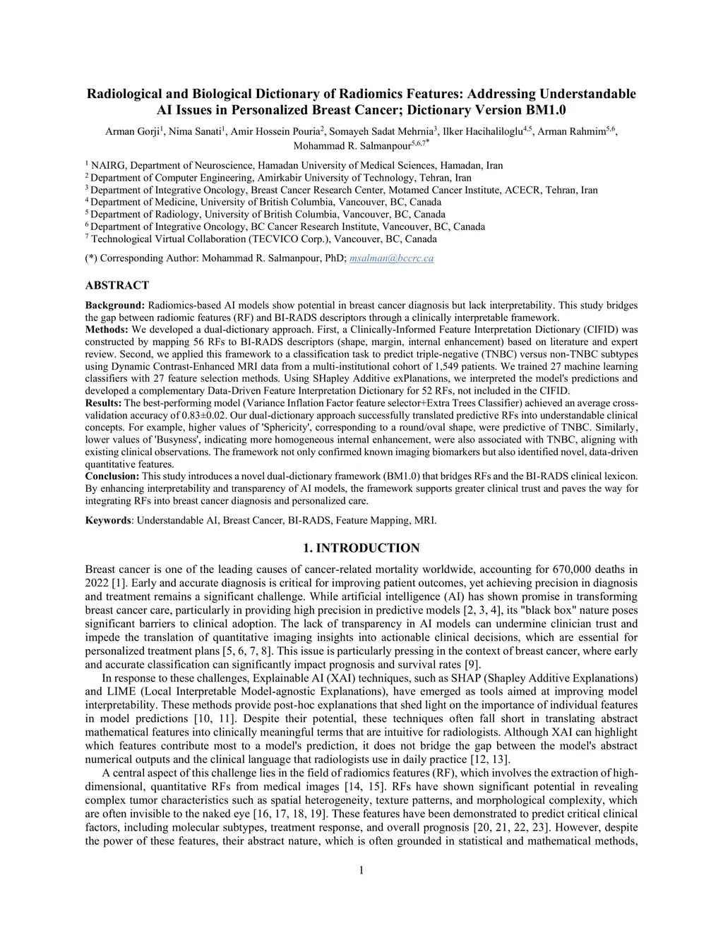 Radiological and Biological Dictionary of Radiomics Features: Addressing Understandable AI Issues in Personalized Breast Cancer; Dictionary Version BM1.0