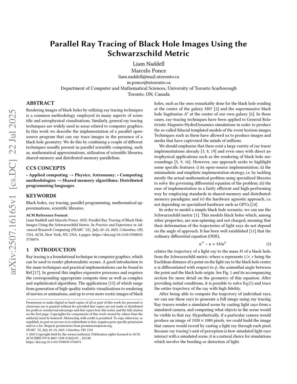 Rendering images of black holes by utilizing ray tracing techniques is a common methodology employed in many aspects of scientific and astrophysical visualizations. Similarly, general ray tracing techniques are widely used in areas related to computer graphics. In this work we describe the implementation of a parallel open-source program that can ray trace images in the presence of a black hole geometry. We do this by combining a couple of different techniques usually present in parallel scientific computing, such as, mathematical approximations, utilization of scientific libraries, shared-memory and distributed-memory parallelism.