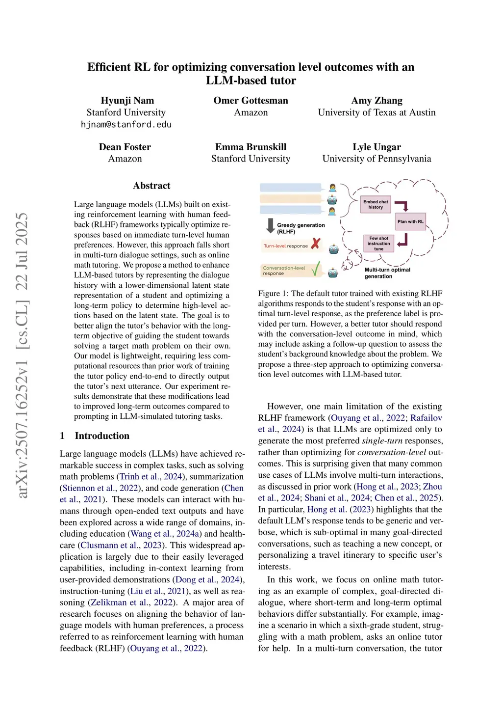 Efficient RL for optimizing conversation level outcomes with an LLM-based tutor