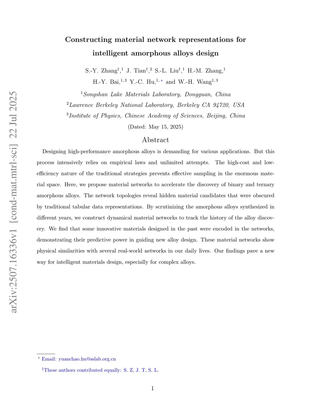 Constructing material network representations for intelligent amorphous alloys design