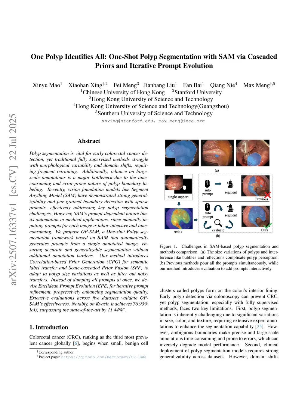 One Polyp Identifies All: One-Shot Polyp Segmentation with SAM via Cascaded Priors and Iterative Prompt Evolution