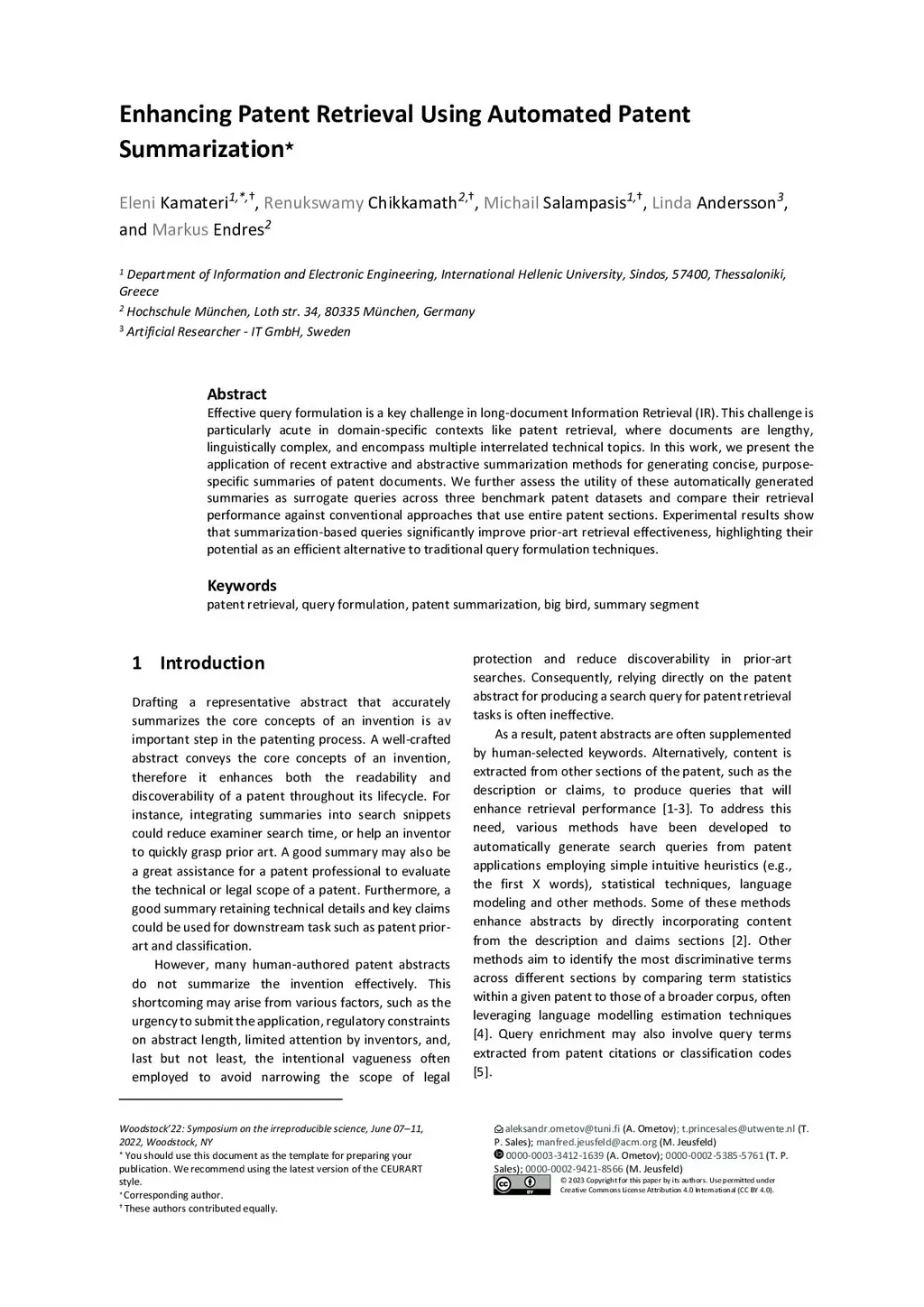 Enhancing patent retrieval using automated patent summarization