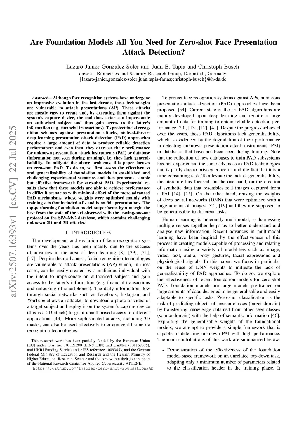 Although face recognition systems have undergone an impressive evolution in the last decade, these technologies are vulnerable to attack presentations (AP). These attacks are mostly easy to create and, by executing them against the system's capture device, the malicious actor can impersonate an authorised subject and thus gain access to the latter's information (e.g., financial transactions). To protect facial recognition schemes against presentation attacks, state-of-the-art deep learning presentation attack detection (PAD) approaches require a large amount of data to produce reliable detection performances and even then, they decrease their performance for unknown presentation attack instruments (PAI) or database (information not seen during training), i.e. they lack generalisability. To mitigate the above problems, this paper focuses on zero-shot PAD. To do so, we first assess the effectiveness and generalisability of foundation models in established and challenging experimental scenarios and then propose a simple but effective framework for zero-shot PAD. Experimental results show that these models are able to achieve performance in difficult scenarios with minimal effort of the more advanced PAD mechanisms, whose weights were optimised mainly with training sets that included APs and bona fide presentations. The top-performing foundation model outperforms by a margin the best from the state of the art observed with the leaving-one-out protocol on the SiW-Mv2 database, which contains challenging unknown 2D and 3D attacks