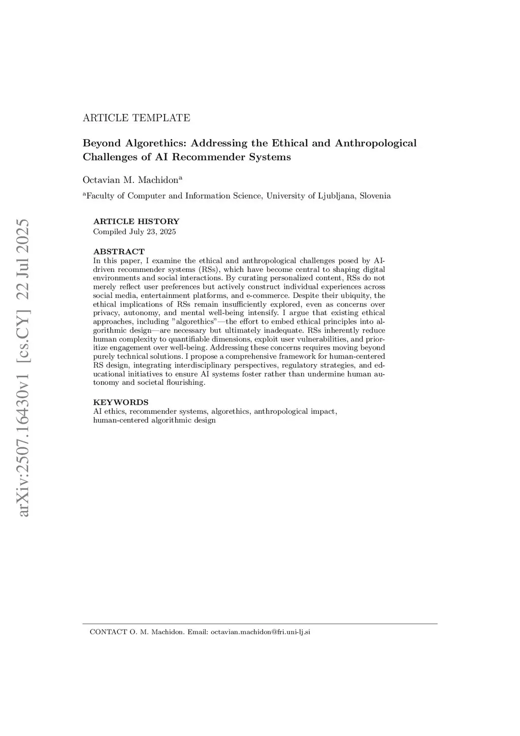 Beyond Algorethics: Addressing the Ethical and Anthropological Challenges of AI Recommender Systems