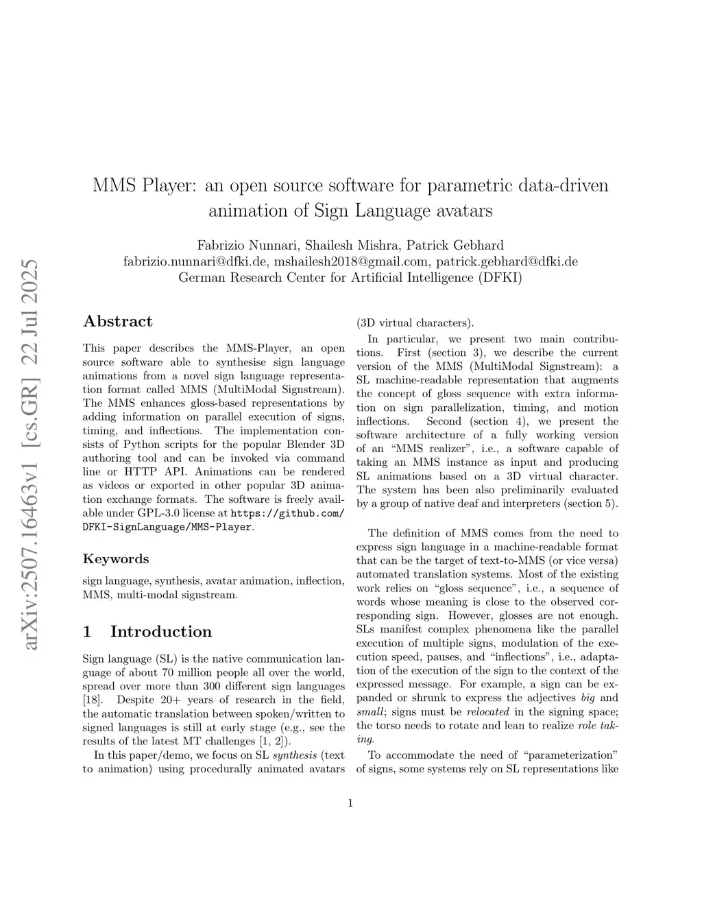 MMS Player: an open source software for parametric data-driven animation of Sign Language avatars