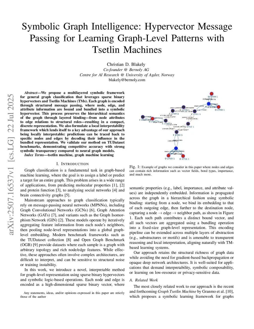 We propose a multilayered symbolic framework for general graph classification that leverages sparse binary hypervectors and Tsetlin Machines. Each graph is encoded through structured message passing, where node, edge, and attribute information are bound and bundled into a symbolic hypervector. This process preserves the hierarchical semantics of the graph through layered binding from node attributes to edge relations to structural roles resulting in a compact, discrete representation. We also formulate a local interpretability framework which lends itself to a key advantage of our approach being locally interpretable. We validate our method on TUDataset benchmarks, demonstrating competitive accuracy with strong symbolic transparency compared to neural graph models.