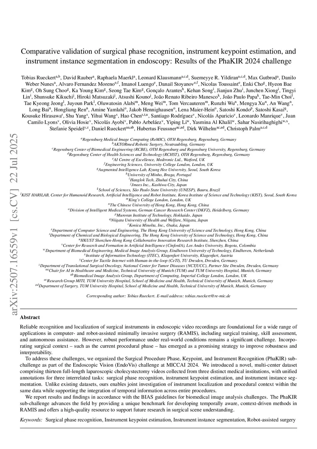 Comparative validation of surgical phase recognition, instrument keypoint estimation, and instrument instance segmentation in endoscopy: Results of the PhaKIR 2024 challenge