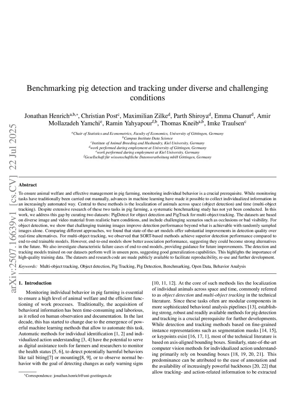 Benchmarking pig detection and tracking under diverse and challenging conditions
