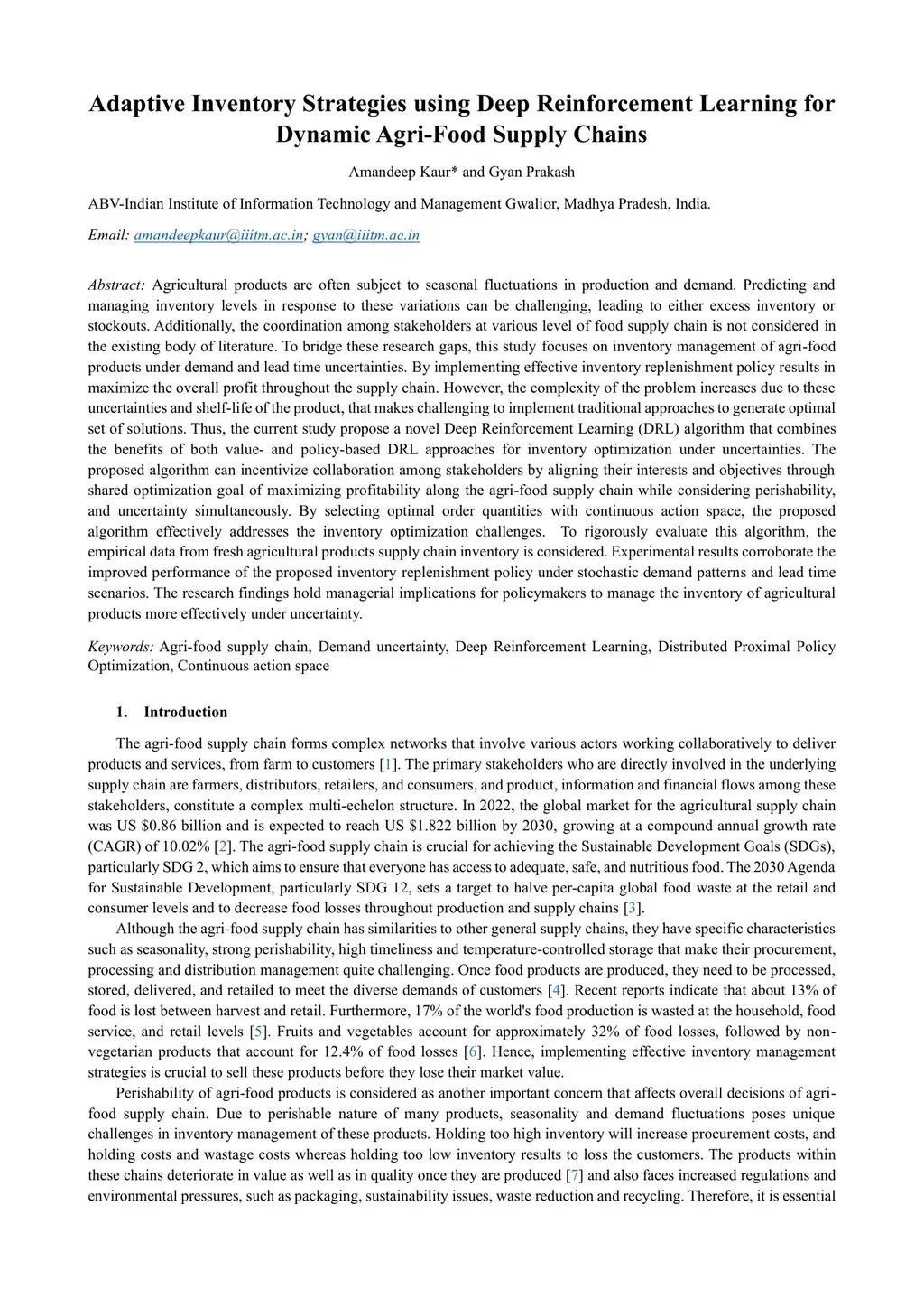 Adaptive Inventory Strategies using Deep Reinforcement Learning for Dynamic Agri-Food Supply Chains