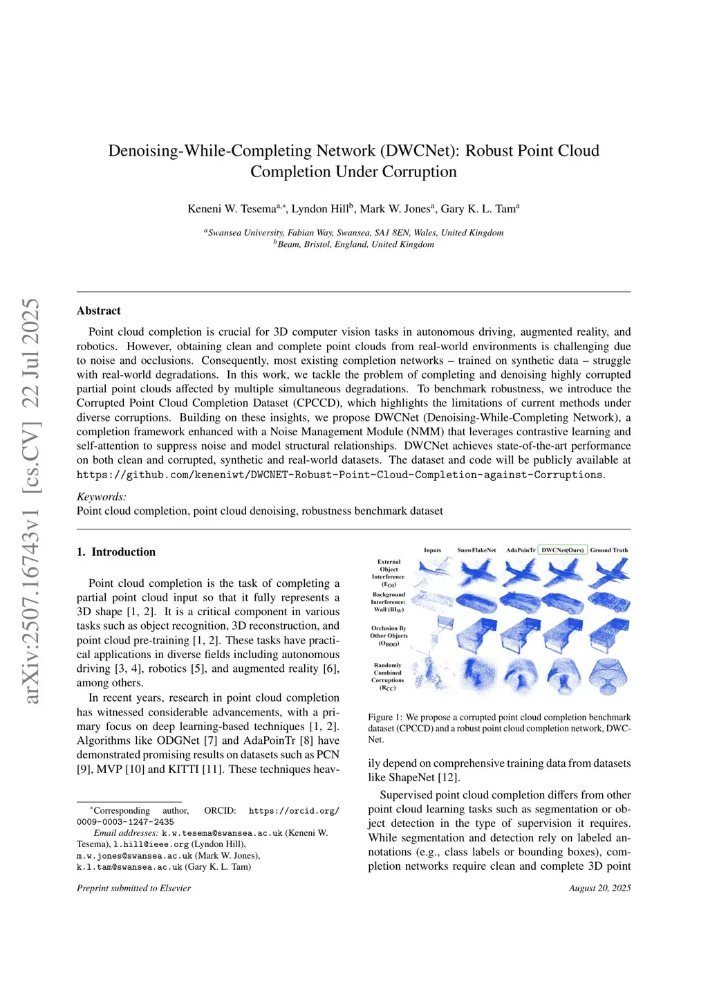 Denoising-While-Completing Network (DWCNet): Robust Point Cloud Completion Under Corruption