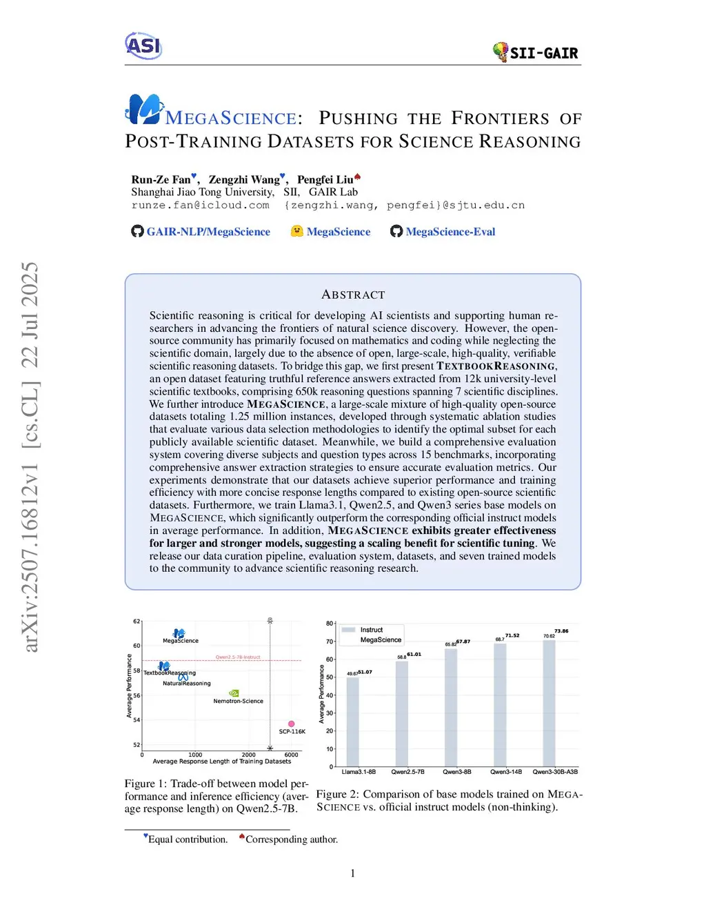 MegaScience: Pushing the Frontiers of Post-Training Datasets for Science Reasoning