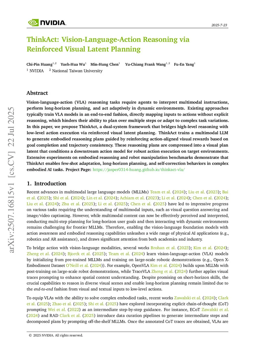 ThinkAct: Vision-Language-Action Reasoning via Reinforced Visual Latent Planning