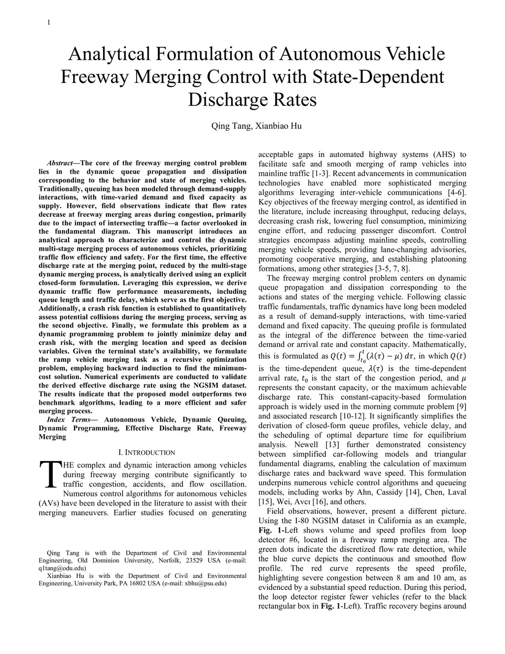 The core of the freeway merging control problem lies in dynamic queue propagation and dissipation linked to merging vehicle behavior. Traditionally, queuing is modeled through demand-supply interactions with time varying demand and fixed capacity. However, field observations show flow rates decrease during congestion at freeway merges due to the impact of intersecting traffic, a factor overlooked in fundamental diagrams. This manuscript introduces an analytical approach to characterize and control the dynamic multi-stage merging of autonomous vehicles, prioritizing traffic efficiency and safety. For the first time, the effective discharge rate at the merging point, reduced by the multi-stage dynamic merging process, is analytically derived using a closed form formulation. Leveraging this expression, performance metrics such as queue length and traffic delay are derived as the first objective. Additionally, a crash risk function is established to quantitatively assess potential collisions during the merging process, serving as the second objective. Finally, the problem is formulated as a dynamic programming model to jointly minimize delay and crash risk, with the merging location and speed as decision variables. Given the terminal state, the ramp vehicle merging task is formulated as a recursive optimization problem, employing backward induction to find the minimum cost solution. Numerical experiments using the NGSIM dataset validate the derived effective discharge rate. The results indicate that the proposed model outperforms two benchmark algorithms, leading to a more efficient and safer merging process.