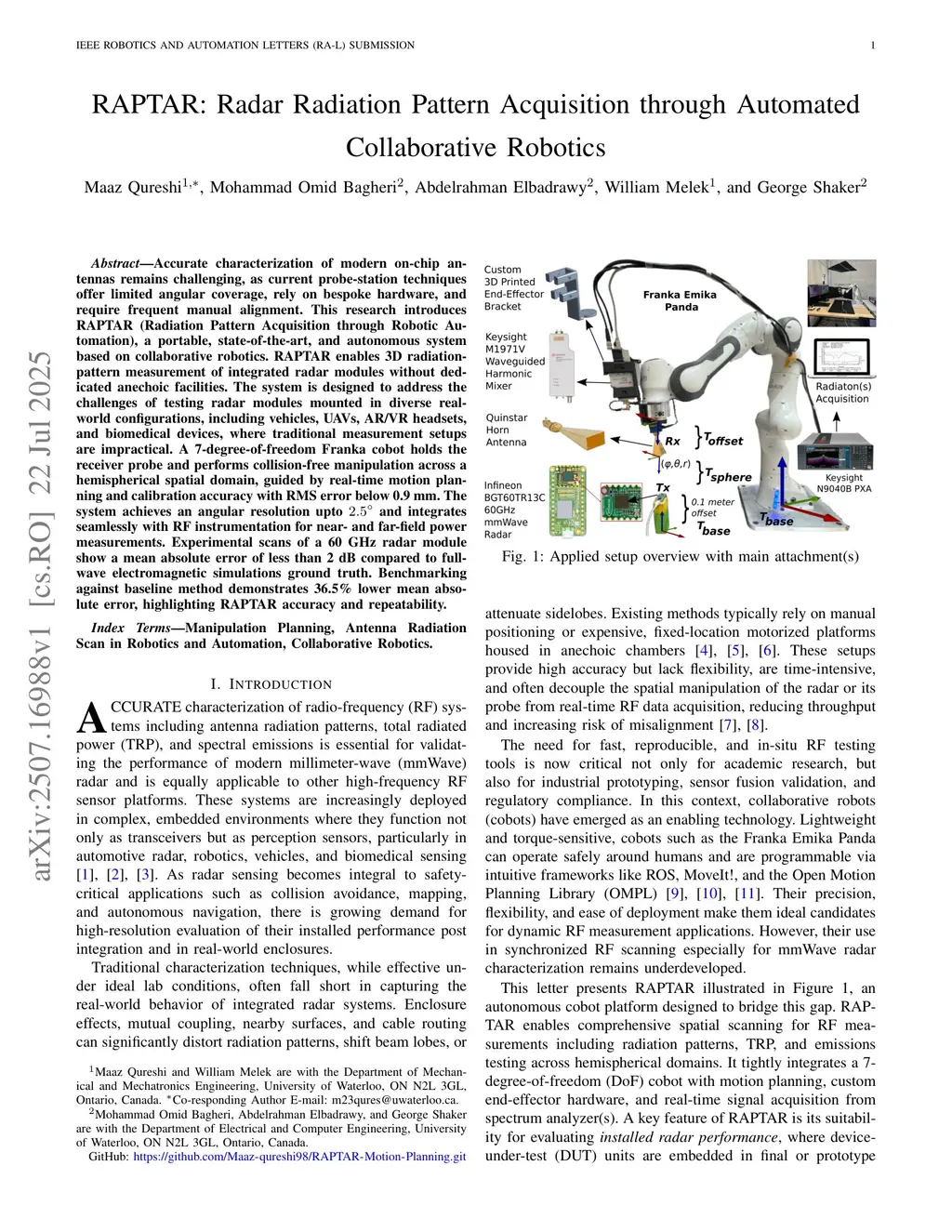 RAPTAR: Radar Radiation Pattern Acquisition through Automated Collaborative Robotics